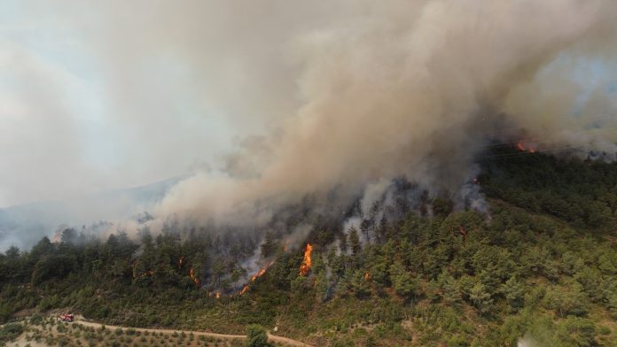 HATAY (İHA) – Hatay’da yangının 25’inci saatinde ekiplerin karadan ve havadan müdahalesi dronla görüntülendi.