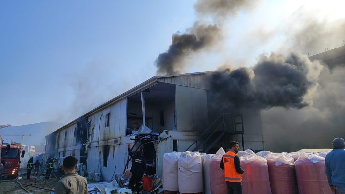 Hatay’da şantiye alanında bulunan işçilerin kaldığı konteyner yatakhane alevlere teslim oldu. Can kaybı ve yaralanma yaşanmadan kontrol altına alınan yangında vatandaşların yaşadığı panik kameraya yansıdı.