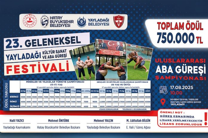 Hatay Büyükşehir Belediyesi ve Yayladağı Belediyesi iş birliği ile bu yıl 23.’sü düzenlenecek olan Geleneksel Yayladağı Kültür-Sanat ve Aba Güreşi festivali birbirinden keyifli ve renkli etkinliklerle başlıyor.