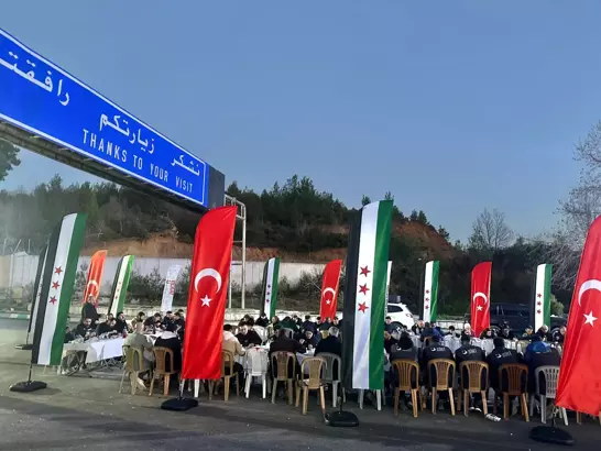 Anda Kardeşe Vefa Derneği’nin Yayladağı Gümrük Kapısı’nda organize ettiği iftar sofrası, tampon bölgede kuruldu. Yayladağı Kaymakamı Halil Yazıcı, Belediye Başkanı Mehmet Yalçın ve Keseb Gümrük Müdürü Husam El Hammud ve iki taraf gümrük personellerin de katıldığı programda birlikte iftar açıldı. Yemek sonrası dualar edilirken, taraflar birbirlerinin Ramazan ayını kutladı.