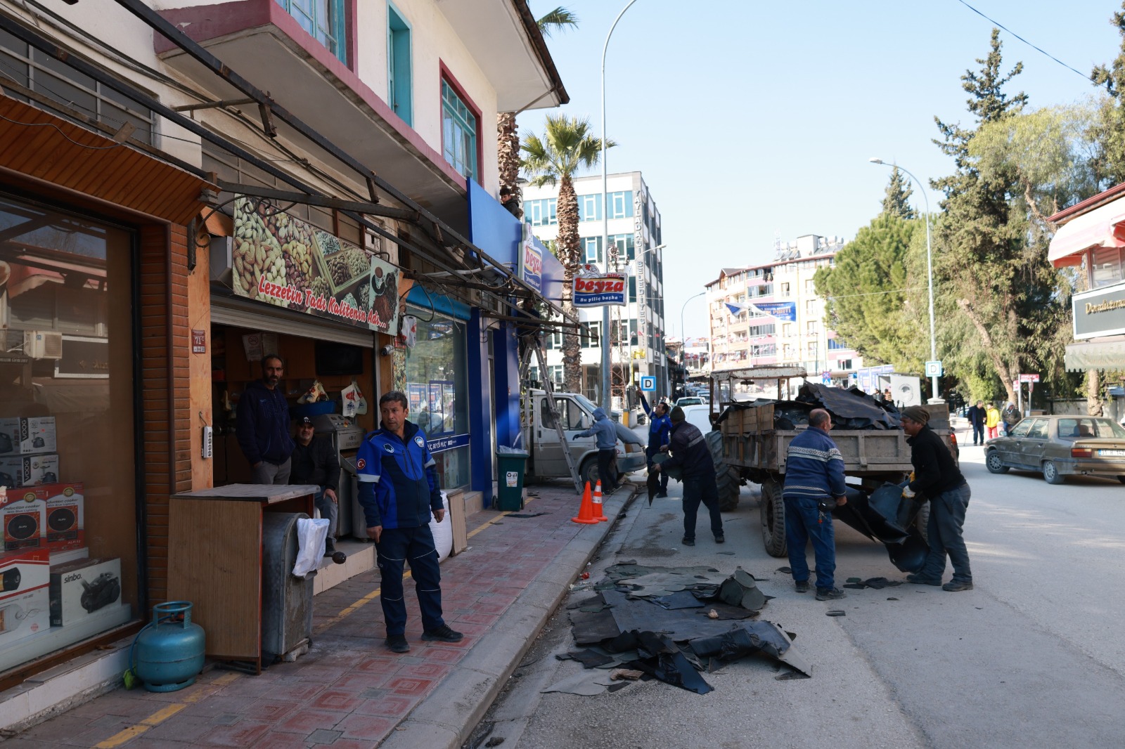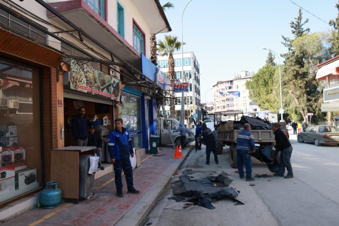 Yayladağı ilçe merkezinde yer alan Atatürk Caddesi’nde iyileştirme ve modernizasyon çalışmaları kapsamında ekipler, çarşıdaki iş yerlerinde yer alan levhalar, klima ve ünitelerin söküm işlemlerine başladı.