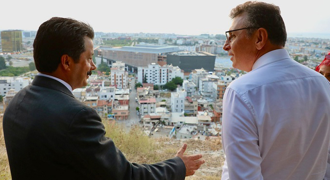 Kaymakam Murat Sefa Demiryürek, İskenderun Belediye Başkanı Mehmet Dönmez ve İlçe Jandarma Komutanı Binbaşı Mustafa Açık daha sonra Esentepe Mahallesi, Çankaya bölgesinde yapımı planlanan Cam Seyir Teras ve Mesire Alanını inceleyerek, 360 derece dönmesi planlanan cam teras hakkında basın mensuplarını bilgilendirdi.