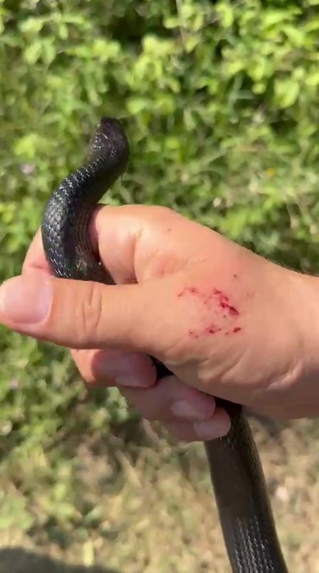 Hatay’ın Payas ilçesinde “Yılancı Kemal” olarak tanınan Kemal Başer, bir eve giren 1 buçuk metrelik kara yılanı yakaladı. Yılanı doğaya bırakacağı esnada görüntü çeken Başer, yılan tarafından ısırıldı. O anlar ise kameraya yansıdı.