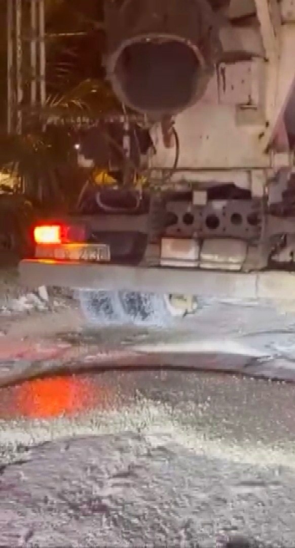Öte yandan, yola beton döken mikser sürücüsünün o anları anbean diğer sürücülerin cep telefonu kamerasına yansıdı.