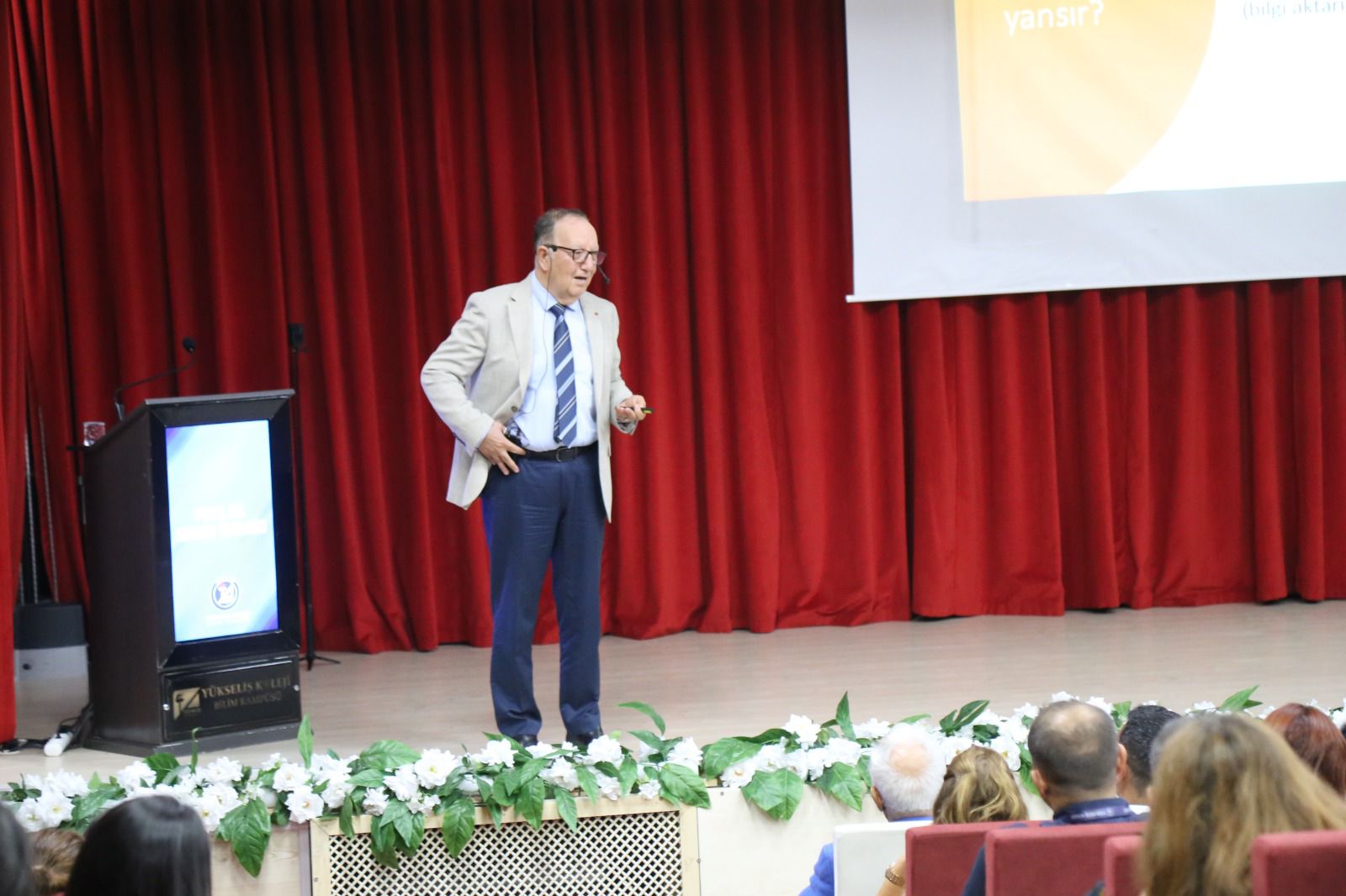 Ardından söz alan Prof. Dr. Servet Özdemir, çağdaş eğitimin önemine vurgu yaparak, “Çağdaş eğitim; öğrenciyi merkeze alan, bireysel farklılıklara saygı duyan ve öğrenmeyi yaşam boyu süren bir süreç olarak gören bir yaklaşımdır. Yeni sınıf yönetimi anlayışı ise disiplin odaklı geleneksel yöntemlerin yerine katılımı, iş birliğini, demokratik değerleri ve teknoloji kullanımını öne çıkarır. Bu anlayışta öğretmen rehber, öğrenci ise aktif öğrenen konumundadır.” dedi.