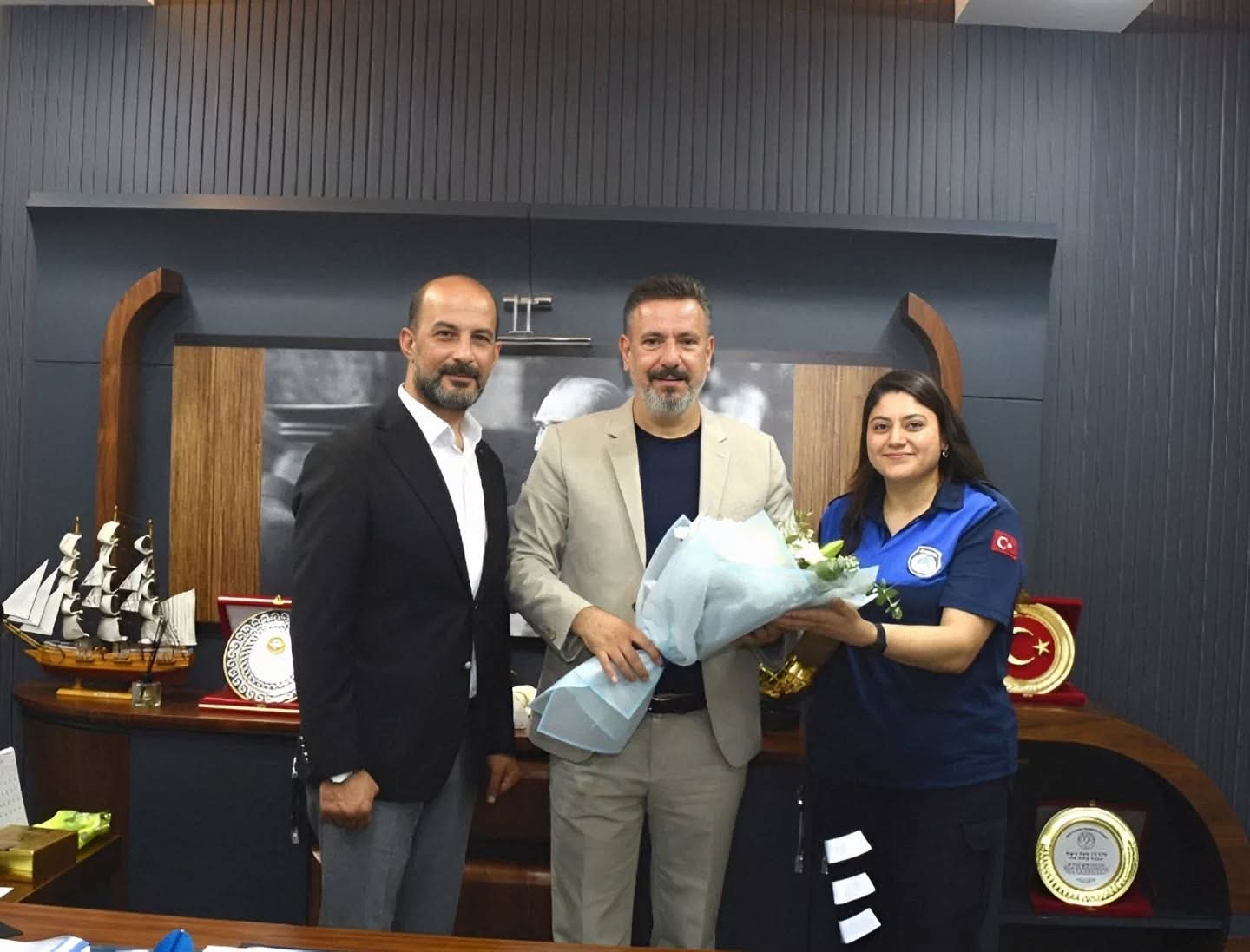 Arsuz Belediyesi Zabıta Müdürü Sinan Altan ve teşkilat personeli, Zabıta Teşkilatının 199’ncu kuruluş yıldönümü nedeniyle Belediye Başkanı Sami Üstün’ü ziyaret etti.