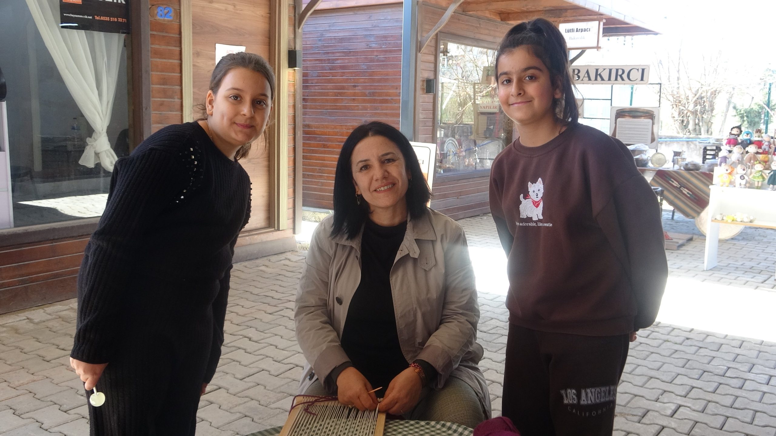 Dedesinden aldığı ilhamla 30 yıldır kilim dokumacılığı yaparak kadının kendi ayakları üzerinde durabileceğini gösteren Ferdali Bostancı, “Ben 30 yıldır kilim dokuma ustasıyım. Dede mesleğini daha geniş çaplı nesillere aktarabilmek için 1994’te bu sanatın okulunu okudum. Dedem eskiden hasır işlerdi, biz küçükken merakla da onu sürekli izlerdik. Çocukluğumdan aklımda kalan bu mesleği ileride üniversitesini okuyup icra edeceğimi açıkçası düşünmemiştim. Depremden sonra tekrar mesleğime kavuşmak ve özellikle şu an sanat çarşısında küçücük de olsa bir dükkanın verilmesi kendi mesleğimi icra edip bunu gelecek nesillere aktarıp bunun için bir imkan sunulması için bize sunulduğundan kaynaklı gerçekten terapi gibi geldi. Kadın öncelikle her şekilde kendi ayaklarının üstünde durur. Bunu her şekilde görüyoruz ve aslında her kadın çok güçlüdür. Yeter ki hiçbir yerden kösteklenmesin ve kendi çabalarıyla düştüğü yerden tek başına kalkabilen bir güce sahiptir. Kadınlar çok zorluklar çekerek bugüne varabilir. Beni destekleyen bir eşim var. Ümit ediyorum ki bütün kadınlara da aynı şekilde belli bir yardım beklemeden kendi seslerini çıkarmak ve kendi güçleriyle ortaya koyabilmek” dedi.